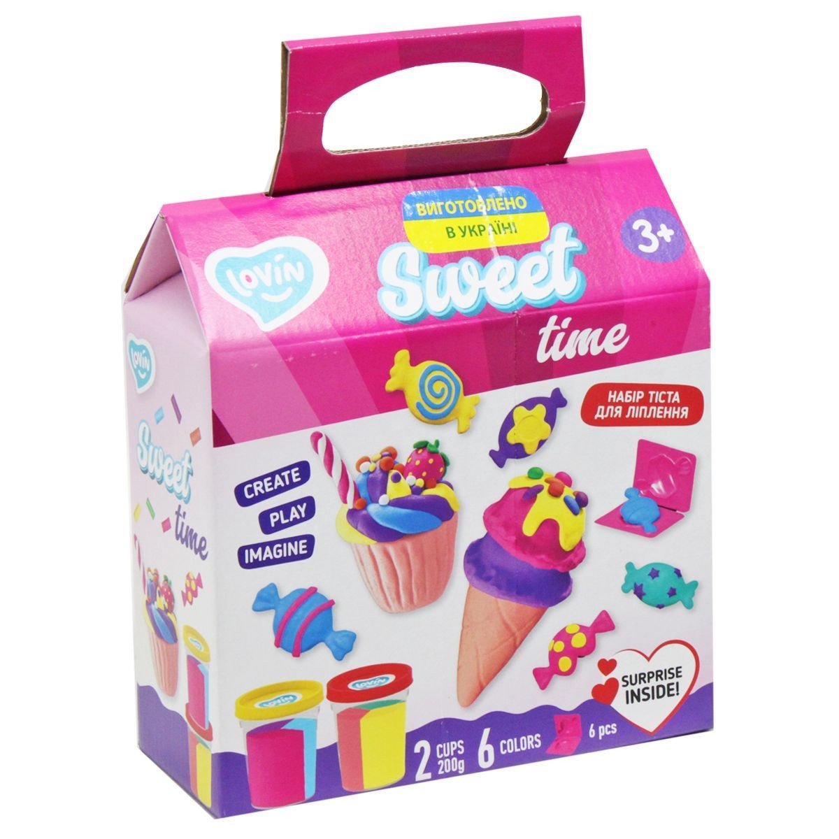 Тісто для ліплення - це набір для творчості та відпочинку, антистрес для дітей та дорослих! Ніжність та пластичність матеріалу сприяє розвитку дрібної моторики рук та тактильних відчуттів, гармонізуючи психологічний стан дитини. У комплект входить 2 стакани різнокольорового тіста для ліплення (загальна вага ~200 г), 6 пластикових 3D формочок у вигляді цукерок, пластикова тарілочка.