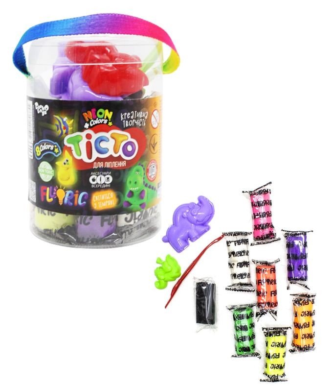 Тісто приємне на дотик, нетоксичний. Світиться в темряві. 8 кольорів. Стек і 2 формочки в комплекті.