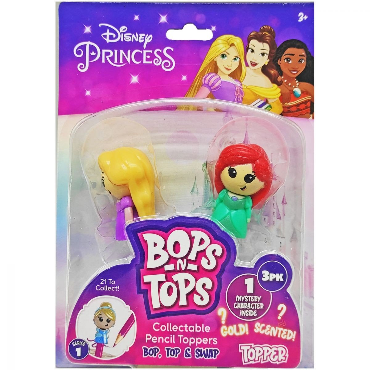 Набір фігурок-топерів для олівців та ручок у вигляді принцес з мультфільмів Disney. У наборі 3 фігурки та 1 з них є сюрпризом. Фігурки чудово підходять для колекціонування. Всього в серії є 18 унікальних фігурок, можуть трапитись фігурки з ароматом або золотистим покриттям.