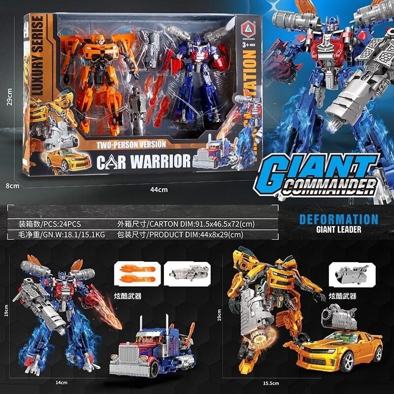 Бренд: XINGGANG Упаковка: Коробка Колір: Різнобарв'я Вага з упаковкою: 630 г Габарити в упаковці: 29 x 44 x 8.5 см Країна виробник: Китай Матеріал: Пластик Комплектація: 2 трансформера