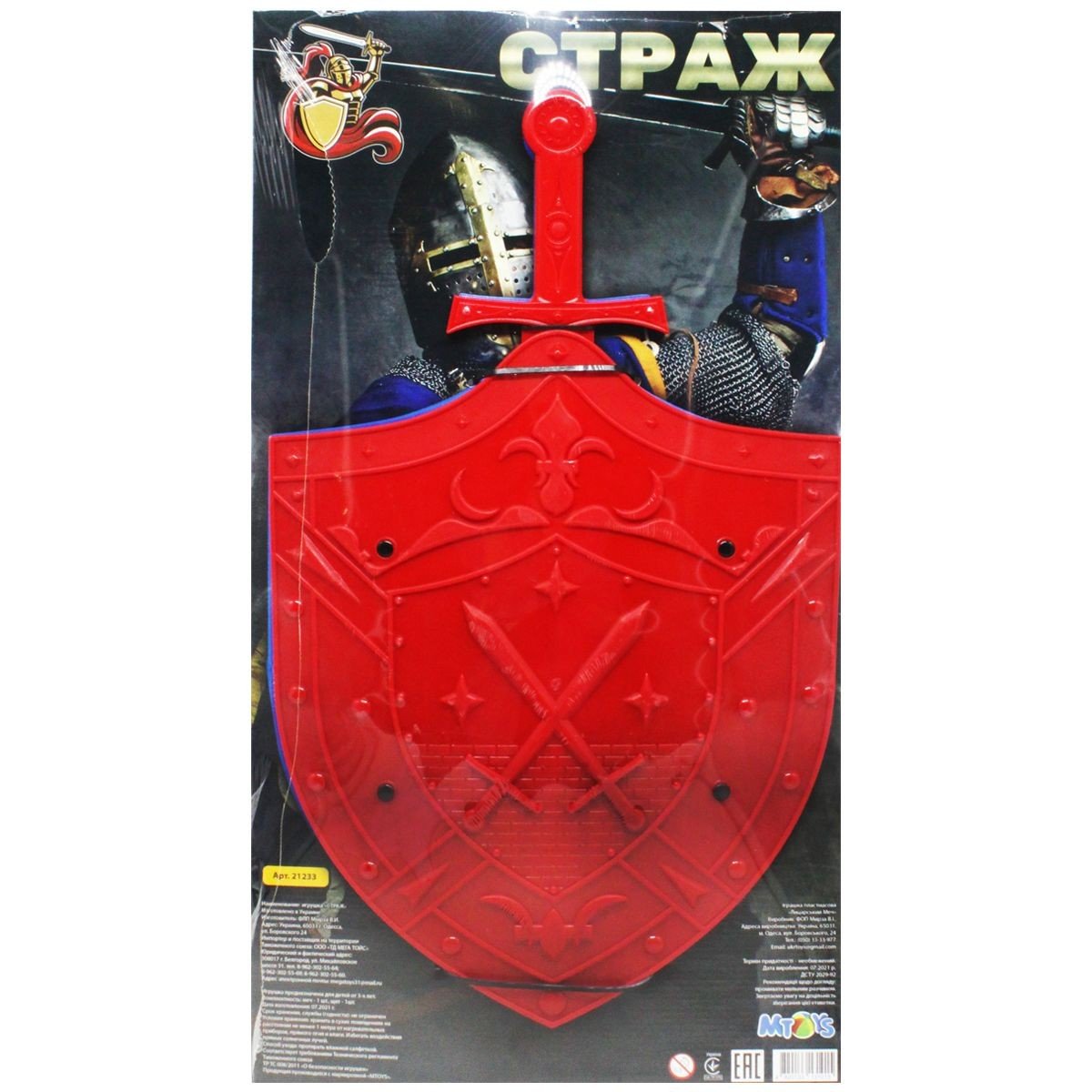 Упаковка: Планшет Колір: Червоний Вага з упаковкою: 520 г Габарити в упаковці: 1 x 60 x 30 см Країна виробник: Україна Матеріал: Пластик Комплектація: Щит, меч