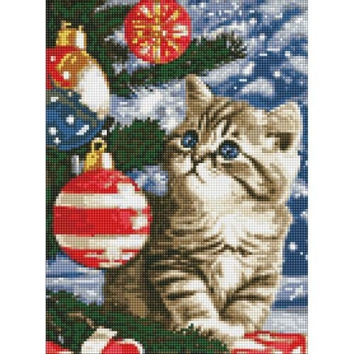 Набір з алмазною мозаїкою "Кошеня під ялинкою" з АВ стразами 30х40см