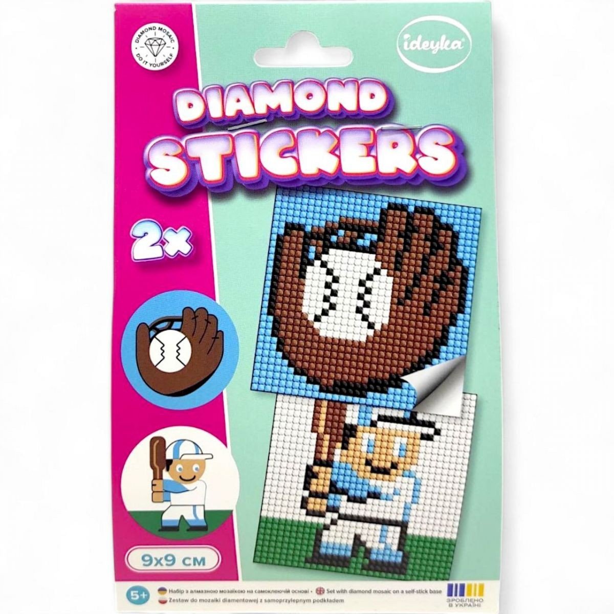 Опис Набір з алмазною мозаїкою на самоклеючій основі "Бейсбол" 9x9 см