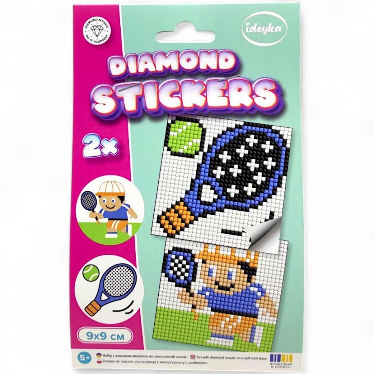 Опис Набір з алмазною мозаїкою на самоклеючій основі "Теніс" 9x9 см