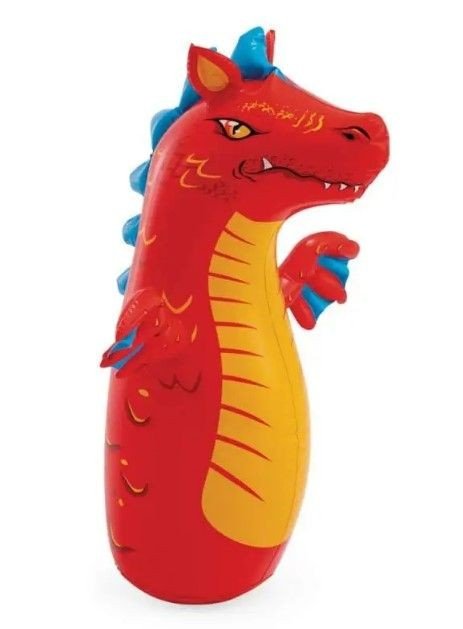 Надувна іграшка стане приємним подарунком для дитини. Іграшку ніжно надути, а на дно влити воду або засипати трохи піску, завдяки чому створюється ефект неваляшки. З іграшкою можна дуріти, штовхати з боку в бік або навіть боксувати. Розмір дракона 98х61 см. Виконаний із міцного вінілу.