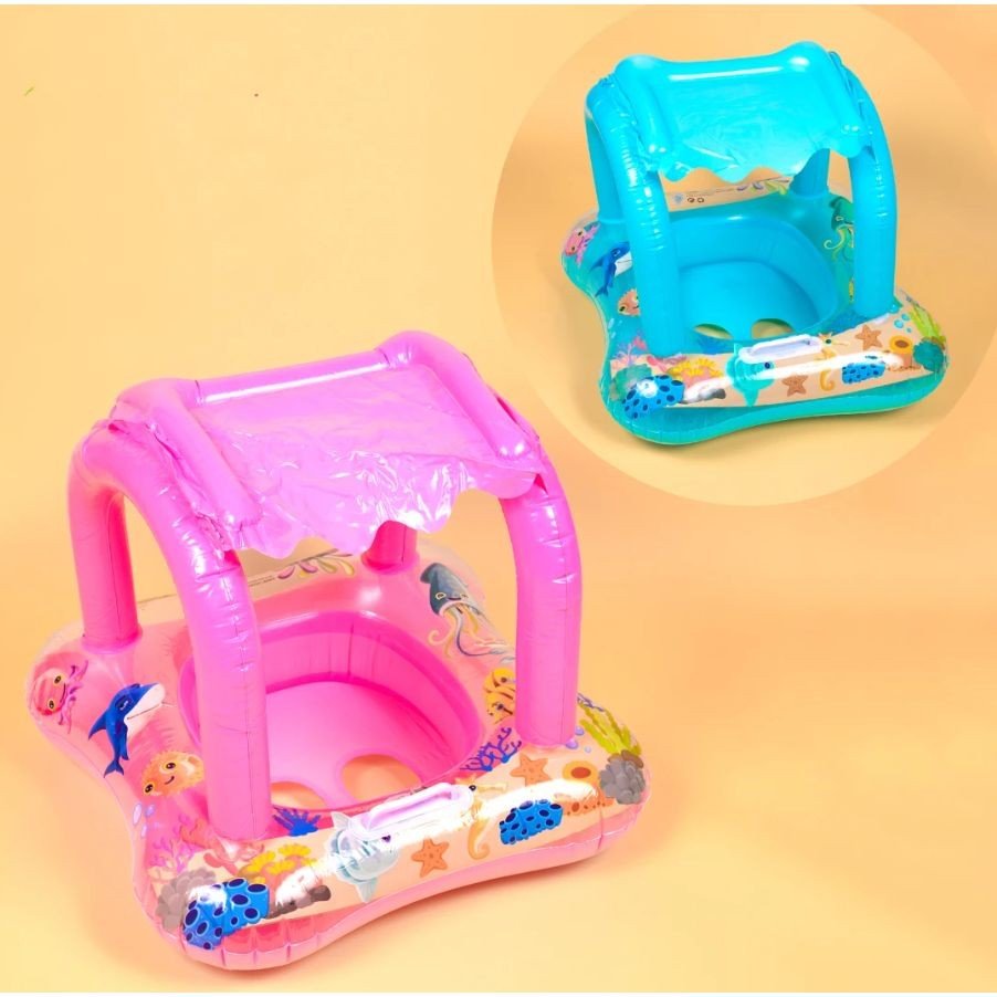 Надувний човник, який ідеально підходить для використання на пляжі або в басейні. Оформлене в стилі морських мешканців та має захист від сонця, присутні різні забарвлення. Має вбудоване сидіння, що може слугувати додатковим елементом безпеки. Виготовлений з комбінованих матеріалів. Рекомендовано для дітей віком від 4 років.