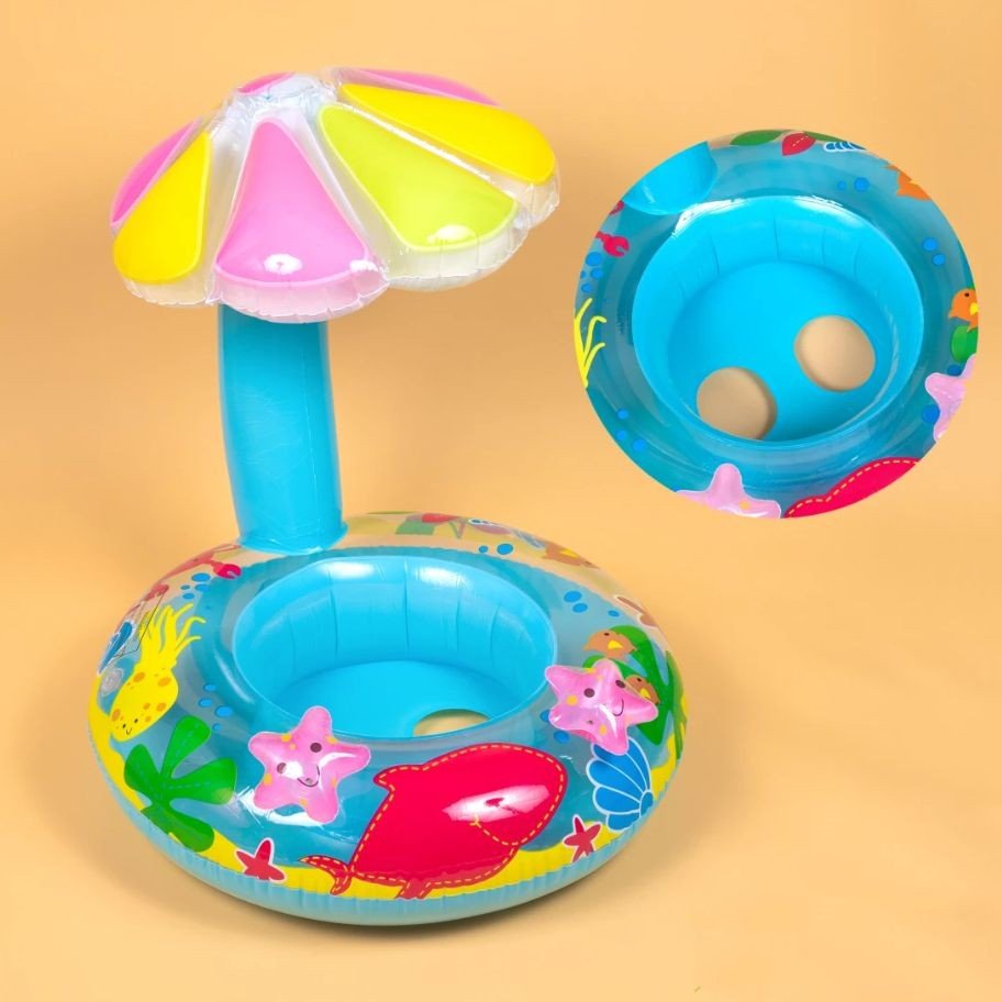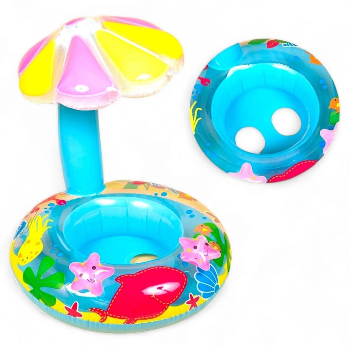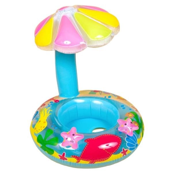 Надувне коло, яке ідеально підходить для використання на пляжі або в басейні. Оформлене в стилі морських мешканців та має захист від сонця, також має вбудоване сидіння, що може слугувати додатковим елементом безпеки. Виготовлене з ПВХ. Рекомендовано для дітей віком від 1 року - лише під наглядом дорослих.
