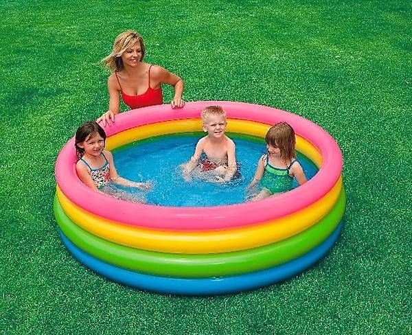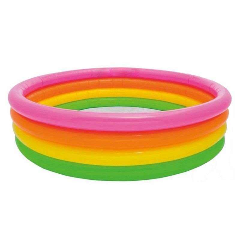 Надувний басейн "Веселі кілечка" виконаний в соковитих райдужних кольорах. Обсяг - 715 л. Для дітей від 3 до 8 років. Розмір 168 х 46 см.