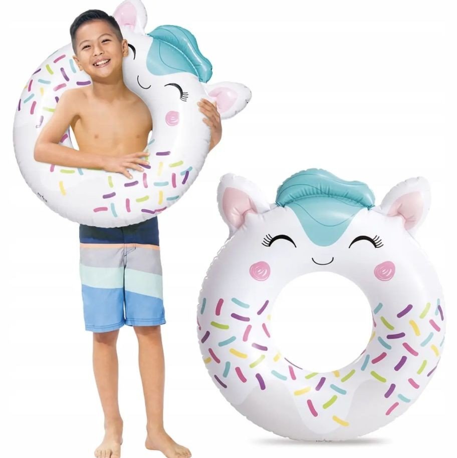 Надувний круг з яскравим принтом. Діаметр - 99х76 см. Виконаний з високоякісного вінілу, міцний та довговічний. Круг ідеально підходить для використання на пляжі або басейні. Оздоблений яскравим малюнком, що забезпечує високу видимість у воді для безпечного використання дитиною.