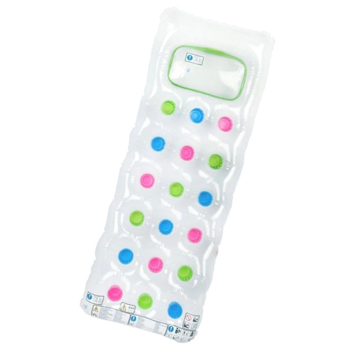 Надувний пляжний матрац, напівпрозорий. Товщина матеріалу - 0,28 мм. Максимальне навантаження - 90 кг.