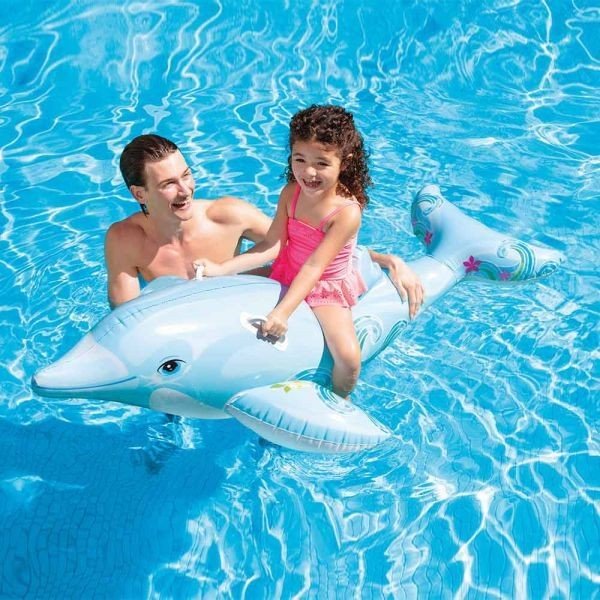 Надувний плот для катання у вигляді дельфіна буде гарним подарунком для дитини. У плотика досить міцні ручки. Розмір – 175х66 см. Максимальне навантаження 40 кг. Виконаний із якісних матеріалів. Для дітей віком від 3-х років.