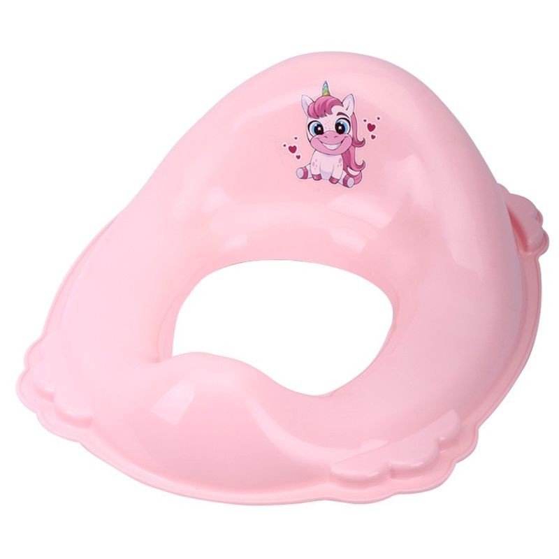 Пластикове сидіння допоможе навчити дитину користуватися дорослим унітазом. Пристосування просто ставиться на обідок унітазу і завдяки зручній формі дитина не зможе провалитися або зісковзнути. Гумові елементи не дозволяють накладці ковзати. Розмір: 40х28х15 см.