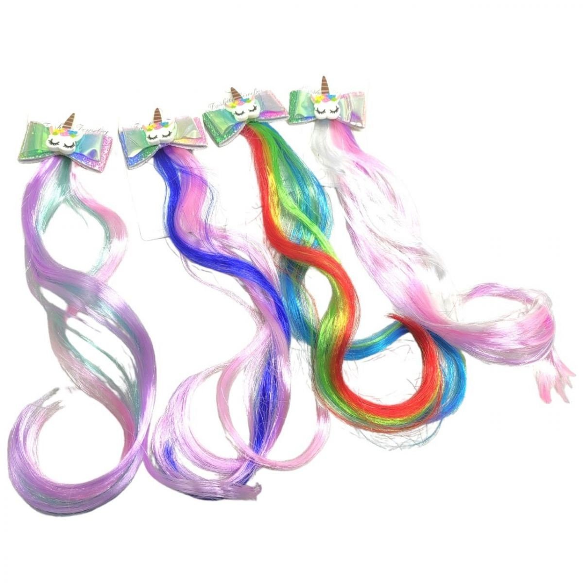 Накладне пасмо - це заколка у вигляді бантика, до якої прикріплено яскраве і насичене кольорове волосся. Завдяки зручній конструкції заколки, її легко закріпити у волоссі, створюючи за лічені секунди вражаючий та стильний акцент. Шпилька з пасмом кольорового волосся не тільки підніме настрій і додасть яскравих ноток в образ дитини, а й підійде для різних подій, включаючи вечірки, фестивалі та косплей. Довжина пасма – 35 см. Різні кольори в асортименті.