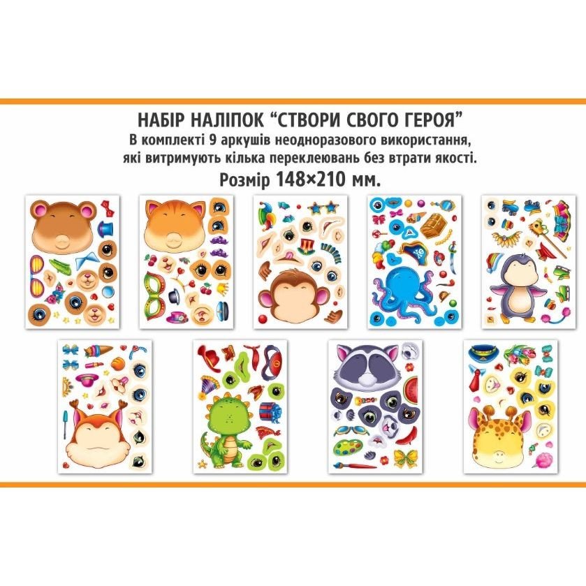 Опис Наліпки аплікації "Створи свого героя" (9 шт)
