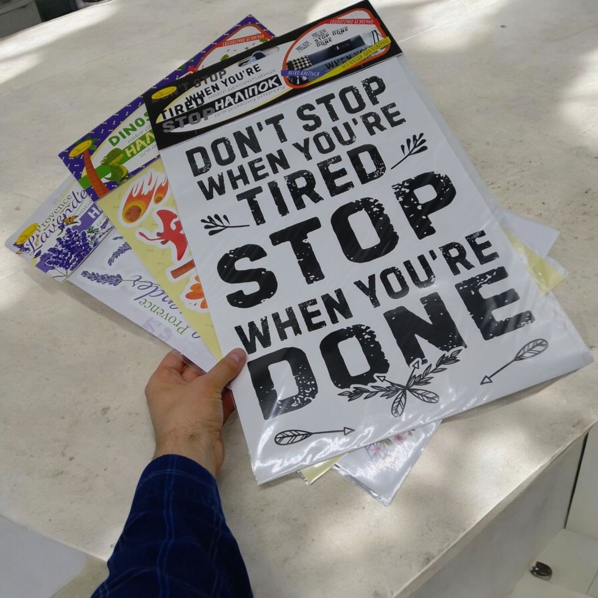 Набір декоративних наліпок на аркуші А3. Такі наліпки можна використовувати для дизайну стін, дверей, вікон або меблів. Поради з використання: 1.Визначте місце, яке хочете задекорувати; 2.Витріть насухо поверхню; 3.Дістаньте аркуш з пакету; 4. Відклейте зображення від підкладки та наклейте на підготовлену поверхню; 5.Складіть композицію з елементів у наборі відповідно до зразка на пакуванні або на власний розсуд.