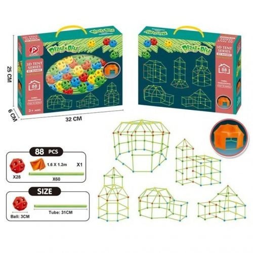 Опис Намет-конструктор 88 деталей, люмінесцентні палички, світиться у темряві, ковдра, в коробці