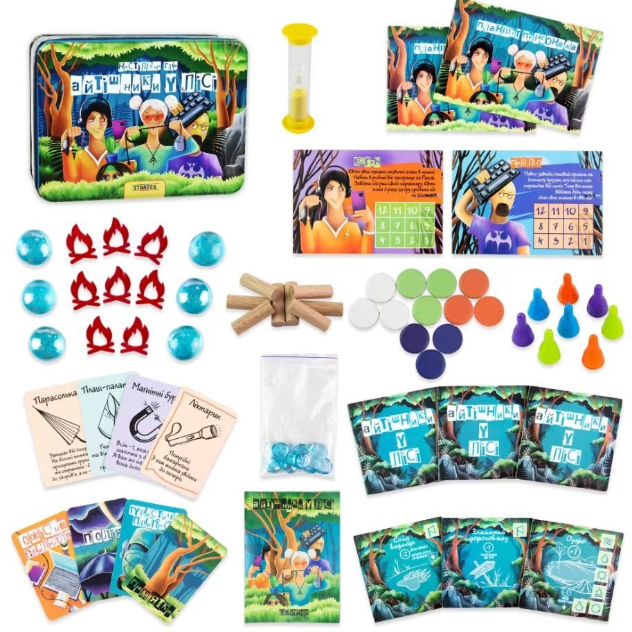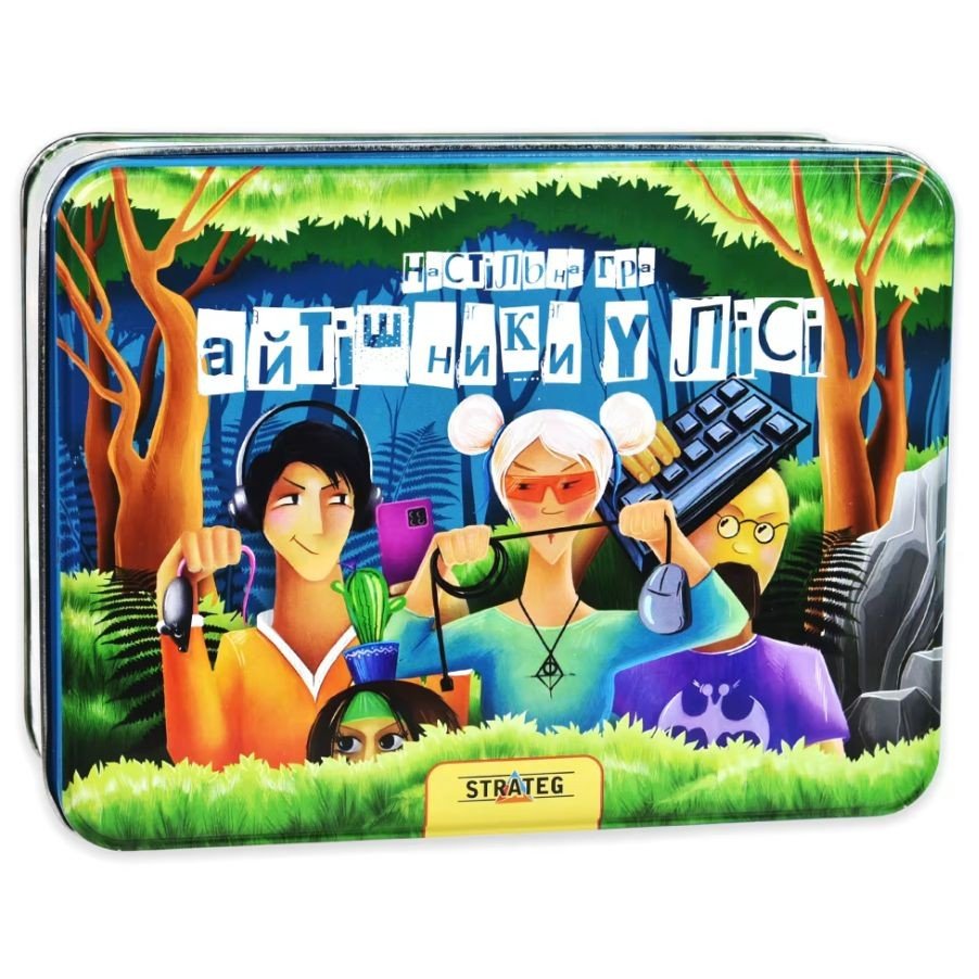 "Айтішники у Лісі" - захоплива настільна гра, яка миттєво переносить вас у вирій лісових пригод. Кожен ваш крок - це не просто гра, а справжня спільна подорож до перемоги. Лише разом із командою ви зможете подолати випробування лісу та подолати усі хитрощі, які він приховує. Комплектація: металева коробка, гральні картки - 99 шт., поля - 25 шт., планшетки персонажів - 4 шт., фішки - 8 шт., жетони - 40 шт., фігурка вогнища - 8 шт., фігурка води -14 шт., дрова - 8 шт., пісковий годинник - 1 шт., інструкція.