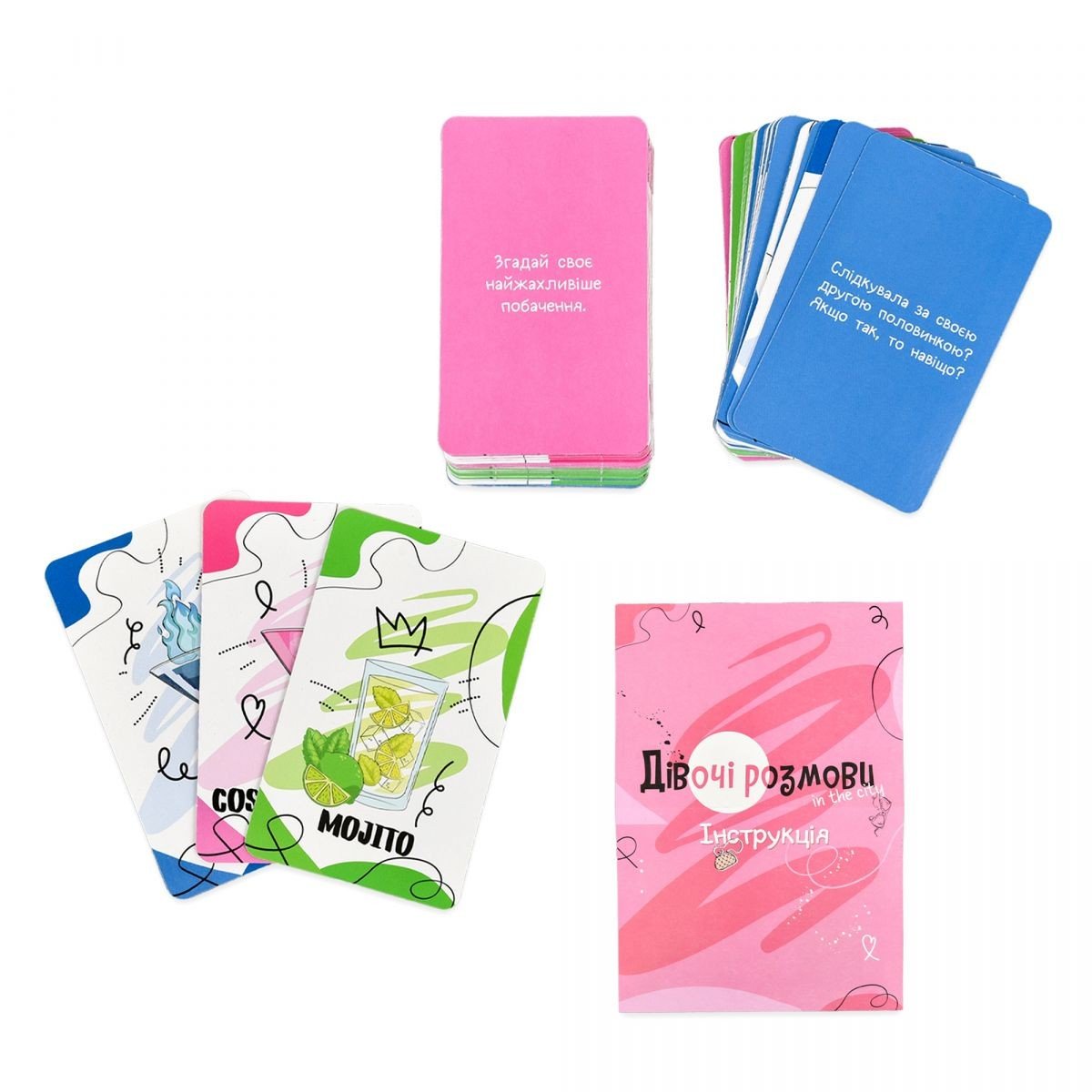 Дівочі розмови - настільна гра, яка зробить вашу зустріч із подругами ще яскравішою. У наборі - картки з питаннями трьох категорій: Прості - для легкого старту та розігріву. Цікаві - щоб дізнатися більше одне про одну. Найгарячіші - для сміливих розмов і відвертих зізнань. Гра ідеально підходить для дівич-вечорів, зустрічей із подругами та святкових вечірок, де можна відверто поспілкуватися та зблизитися. Вона допоможе поговорити про все на світі, краще зрозуміти одна одну й створити незабутню атмосферу легкості та щирості.