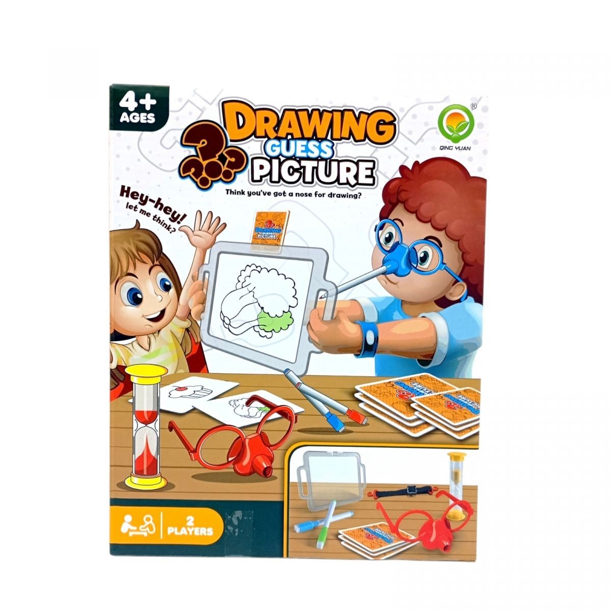 Бренд: QING YUAN Упаковка: Коробка Колір: Різнобарв'я Вага з упаковкою: 354 г Габарити в упаковці: 6.3 x 21 x 26.5 см Країна виробник: Китай Матеріал: Комбінований Комплектація: 2 маски-окуляри (червоні та сині), 8 маркерів різних кольорів, 54 картки із завданнями, дошка для малювання, пісочний годинник, еластичні стрічки