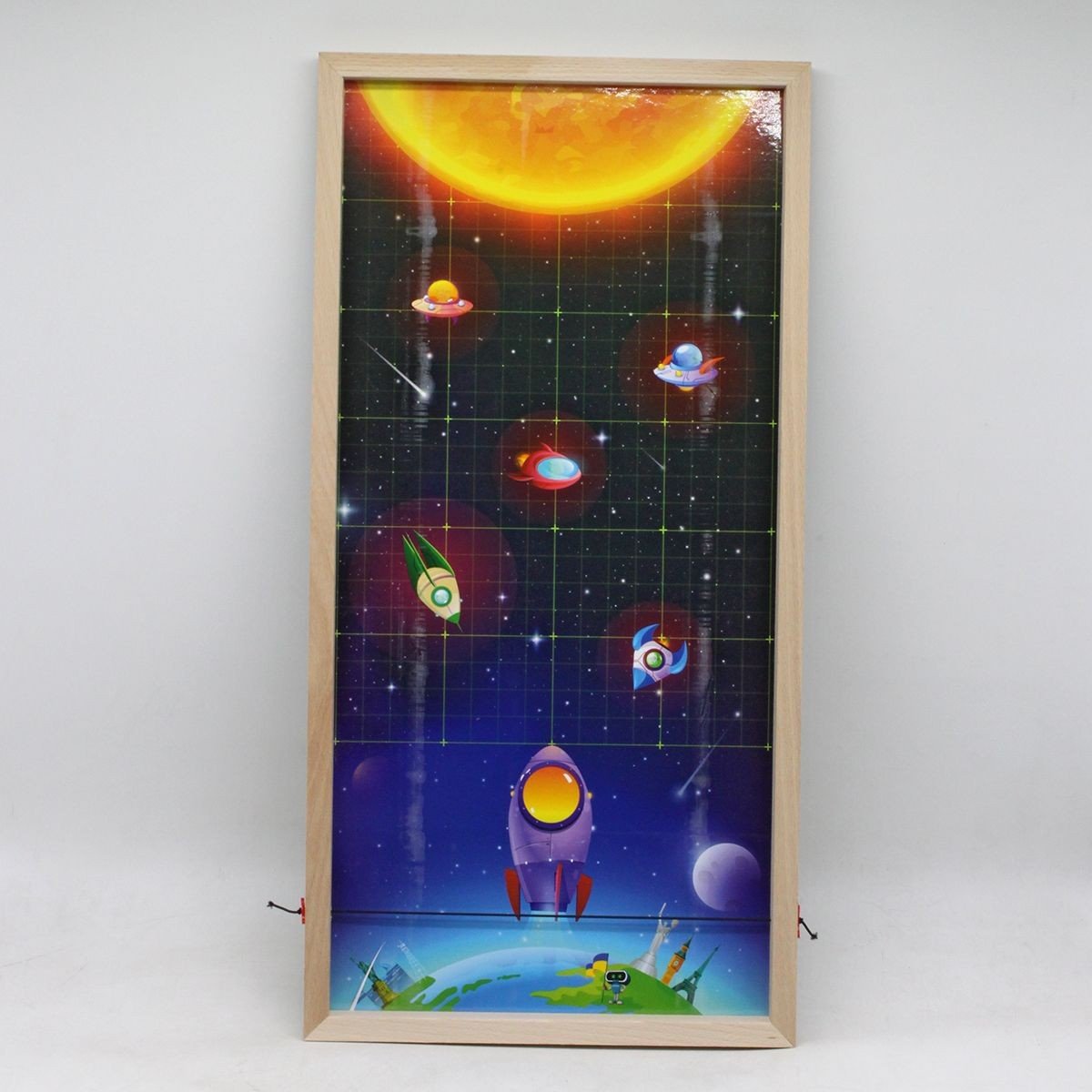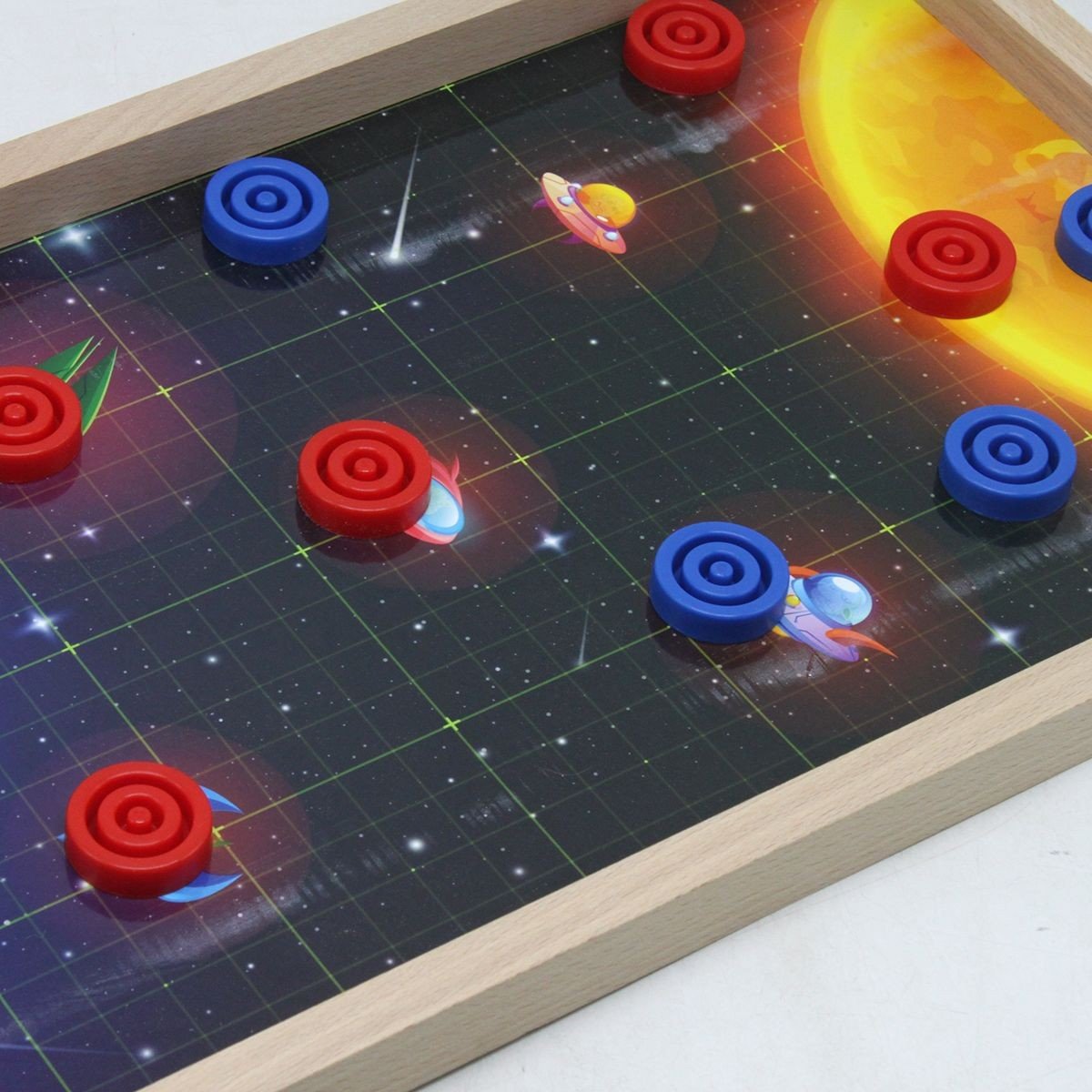У набір входить деревяне ігрове поле, гумка та 12 фішок двох кольорів. Гумку потрібно натягнути на ігрове поле, згідно з інструкцією. Кожен гравець має взяти собі 6 фішок - "кораблів" одного кольору. Грати можна будь-де - у ігрового поля надійна і міцна конструкція. Правила прості та інтуїтивні, грати можуть як дорослі, так і діти.
