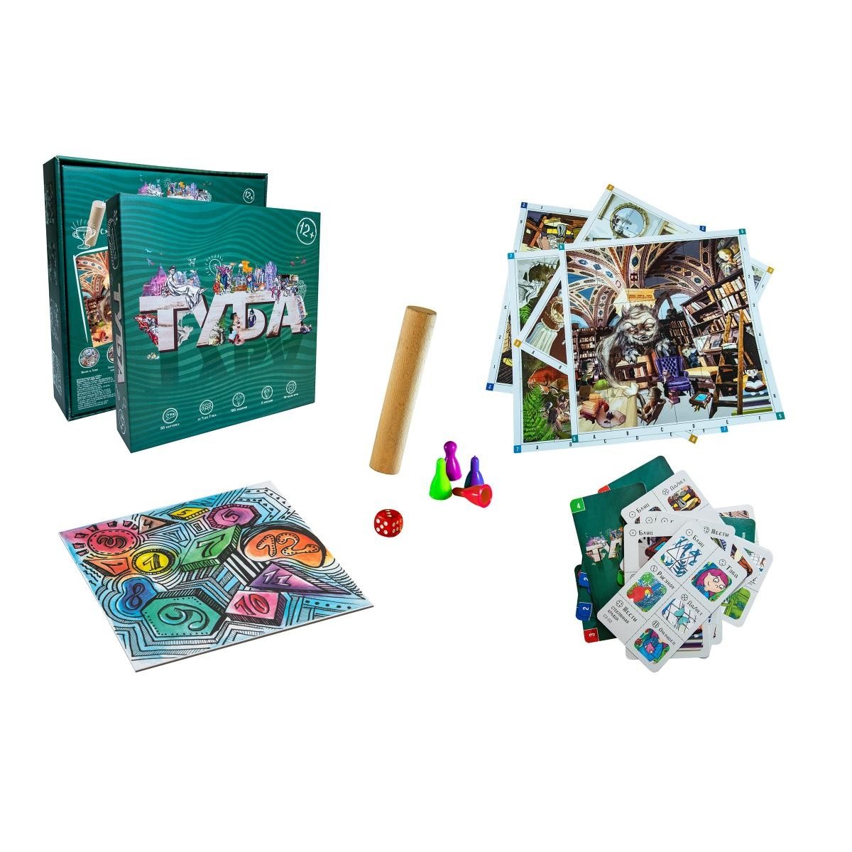 Комплектація: Ігрові поля (3 набори по 8 полів), туба, 80 карток із завданнями (480 завдань), бігова доріжка, 7 фішок, кубик, інструкція