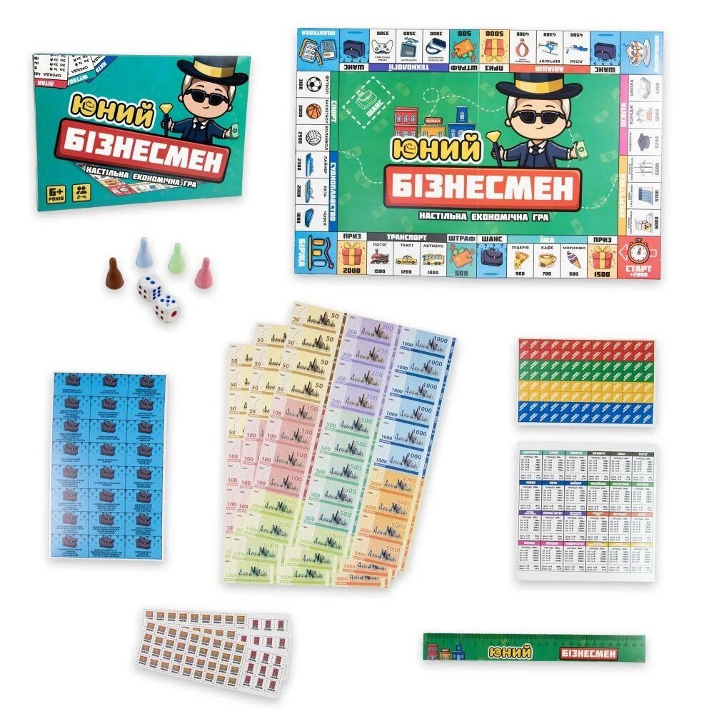 Настільна гра "Юний бізнесмен" дуже схожа на відому гру "Монополія". Ця гра дозволить вам освіжити знання, а вашу дитину навчити основам економіки, навчити розвивати стратегічне мислення. та вміння дивитися на свої результати у перспективі. Також гра допоможе розвинути комунікаційні навички, оскільки під час гри вам доведеться домовлятися з іншими учасниками про купівлю та продаж власності. Кількість учасників – від 2-х до 4-х гравців. Для дітей віком від 6-ти років.