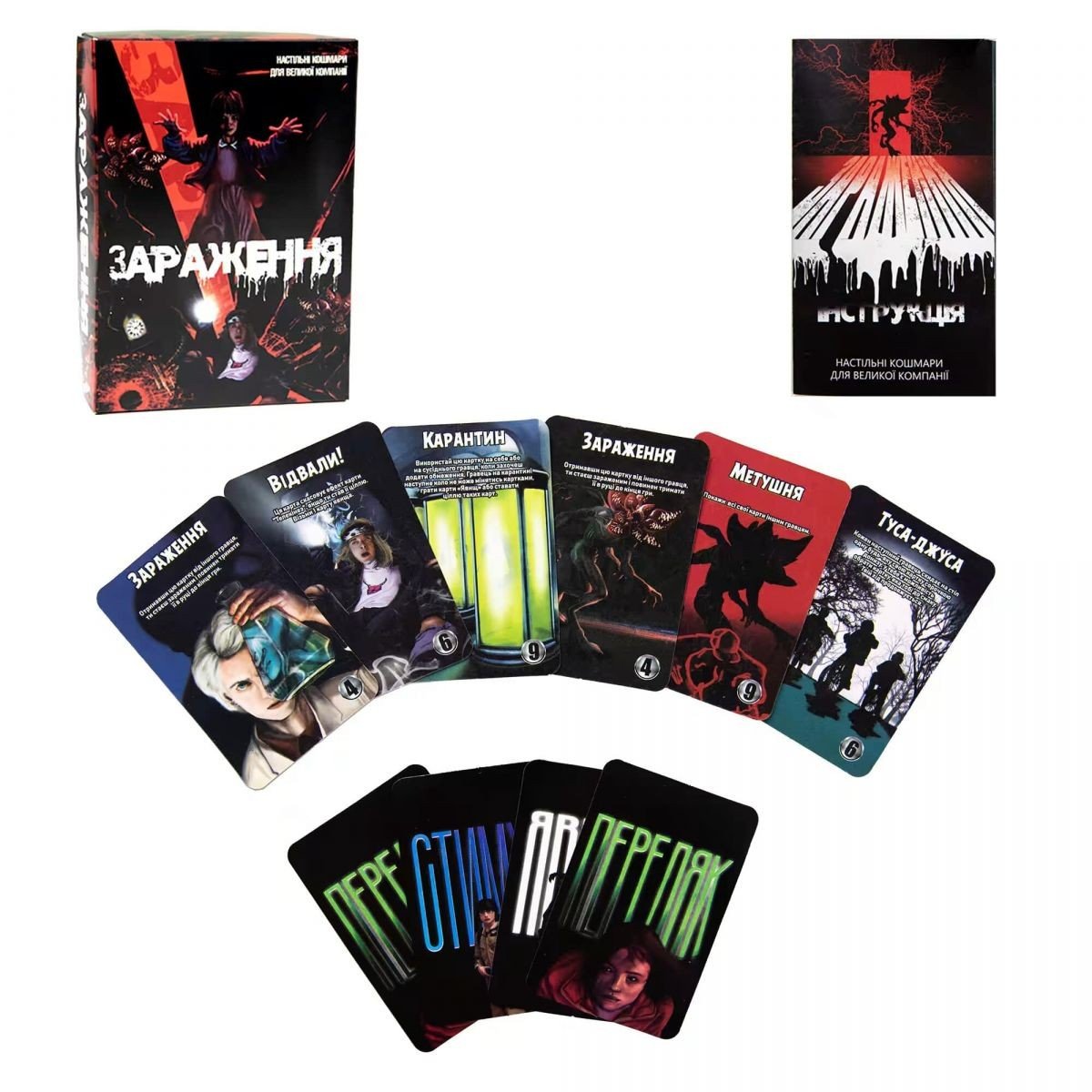 Настільна гра"Зараження" - це гра для великих компаній, яка додасть у ваше дозвілля нотки загадковості. Ви - група друзів, які хочуть розгадати таємницю зникнення людей. Намагаючись дізнатись правду, ви знаходите лабораторію, в якій хтось з вас помічає якесь створіння... Перевірте свою інтуїцію та довіру до своїх друзів. Обмінюючись картами, ви зможете садити суперників або себе на карантин і пускати в хід телекінез проти тих, хто викличе найбільше сумнівів. Будьте обачними та скоріше знайдіть створіння, яке всіх заражає.