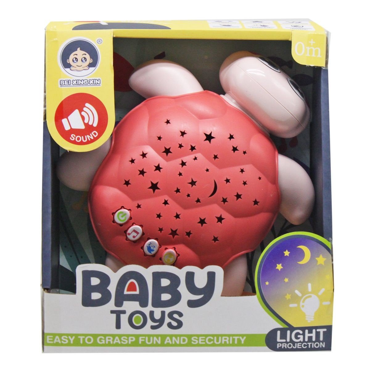 Милий пластиковий нічничок у вигляді черепашки із проектором зіркового неба. Нічник має 4 кнопки - включення/вимкнення, колискова, звуки природи та зміна рівня гучності. Працює від 3-х батарейок АА (немає в комплекті). Розмір нічника – 16 х 15 х 5 см.