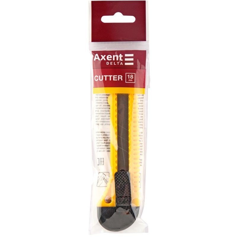 Канцелярський ніж використовується в офісі, на складі, на виробництві і в побуті. Сталеве багатосекційне лезо ножів Delta by Axent забезпечує надійність в роботі завдяки стійкості і гостроті. Механізм ступінчастої подачі леза і механізм фіксації забезпечують безпечну роботу та виключають ризик раптового випадання або провалювання леза. Кришечка з пазом дозволяє просто і безпечно обламати затуплену частину леза уздовж лінії насічки і продовжувати користуватися гострим лезом. У корпусі ножа є отвір для шнурка. Ніж має ергономічний корпус з міцного пластику.