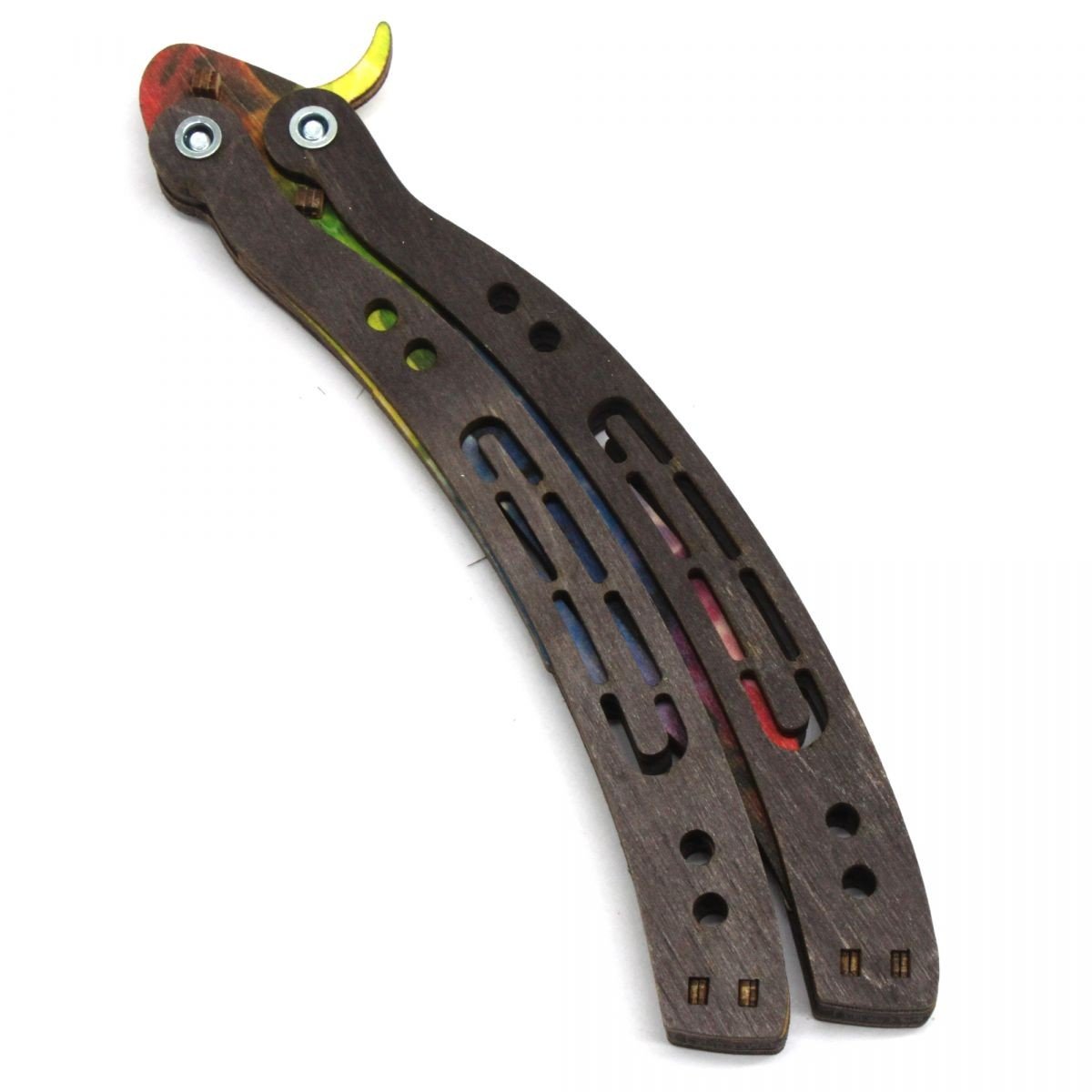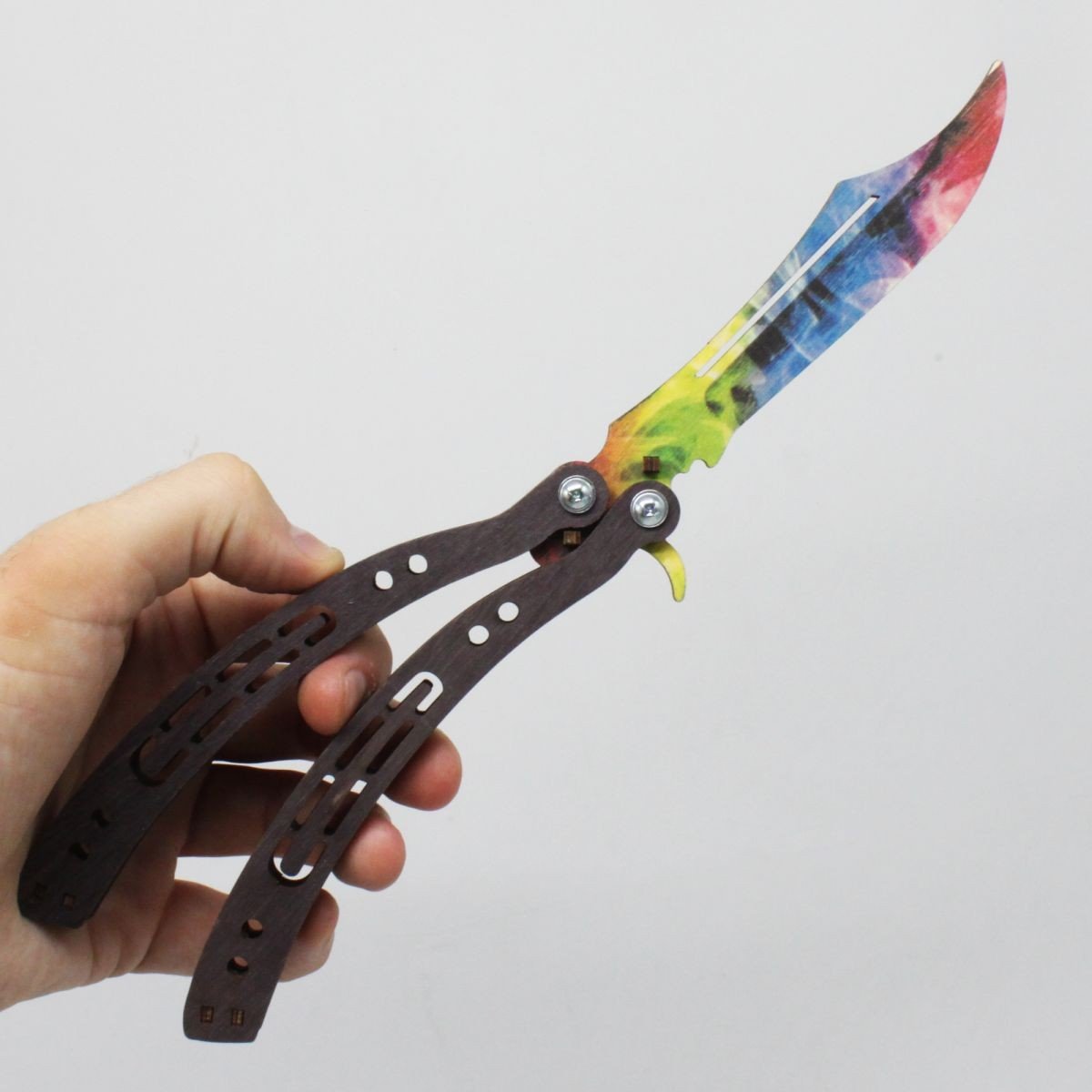 Модель ножа Метелик (Balisong) з забарвленням (Marble fade) з гри Counter Strike Global Offensive Діюча модель, що розкладається. Матеріал: березова фанера різних кольорів. Довжина ножа – 26 см