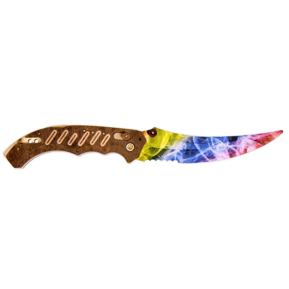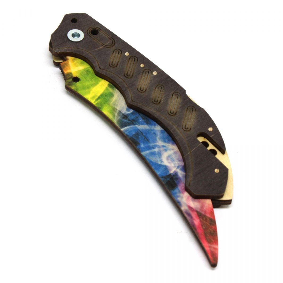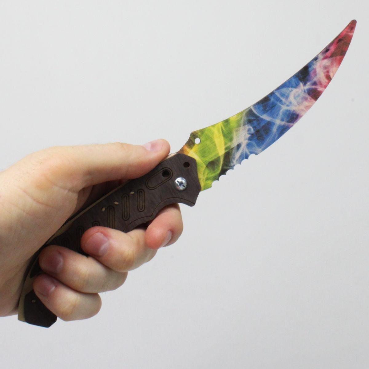 Модель розкладного ножа ФЛІП з гри Counter Strike Global Offensive. Матеріал: березова фанера різних кольорів. Довжина ножа – 22 см.