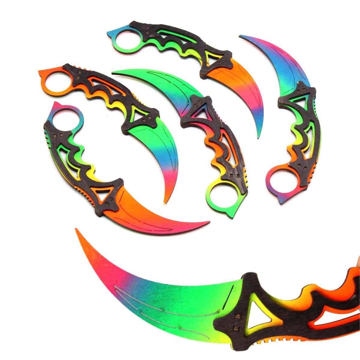 Сувенірна модель ножа Керамбіт. Матеріал: Березова фанера різних відтінків. Довжина ножа 19 см. В комплекті є 5 ножів.