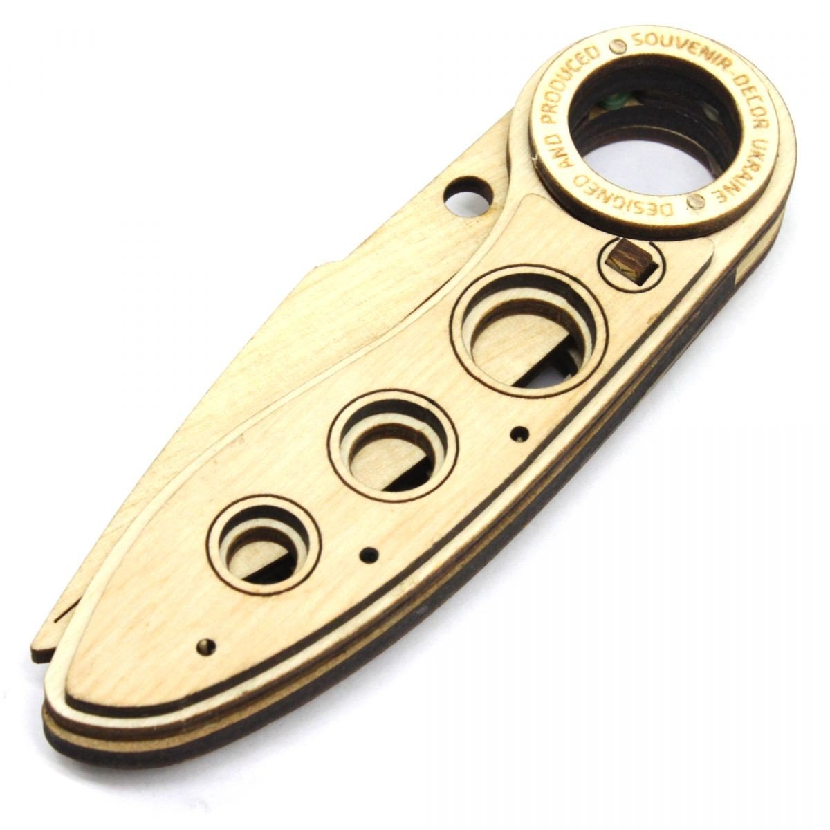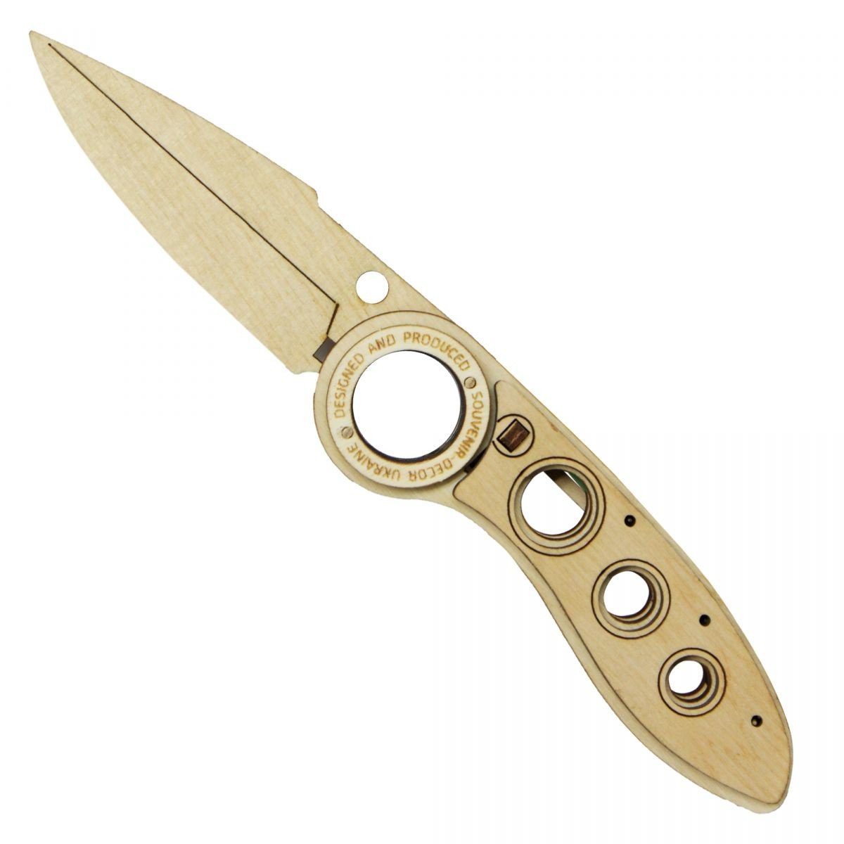 Бренд: Сувенир-Декор Упаковка: Планшет Колір: Різнокольоровий Габарити в упаковці: 8 x 28 x 0.3 см Країна виробник: Україна Матеріал: Дерево Комплектація: Ніж