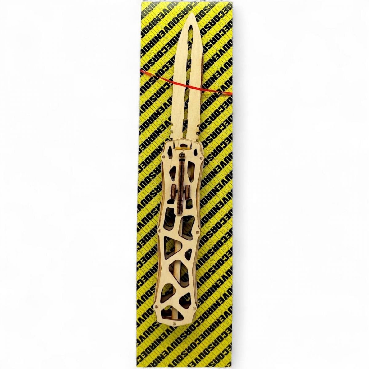 Ніж сувенірний "Викидуха Скелетон". Матеріал: березова фанера. Довжина ножа – 23 см, ширина ручки – 3 см. Чудовий подарунок-сувенір. Ніж деревʼяний, якісний та міцний. Не заточений, гострі частини закруглені та зашліфовані, повністю безпечний. Для дітей віком від 6 років.