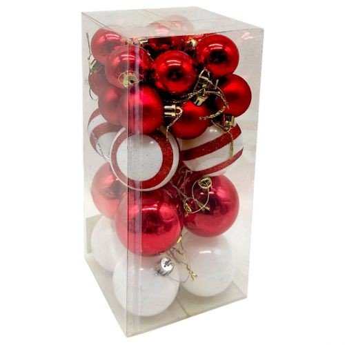 Опис Новорічні прикраси, 30 штук, кульки у слюді