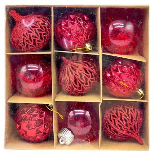 Новорічні прикраси. кульки, 9 штук, діаметр 7см, в коробці