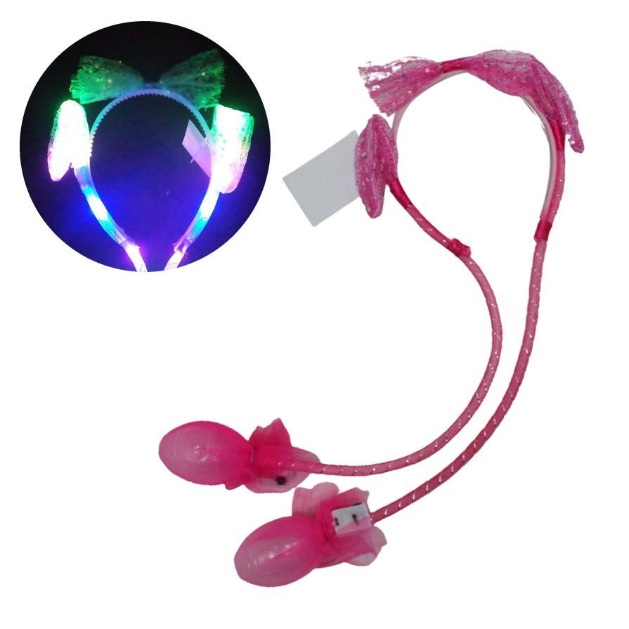 Веселі вушка зайчика стануть приємним подарунком. Секрет вушок - в насосах (грушах), прихованих на кінцях завязок. При натисканні на ці груші - вушка піднімаються. Зроблені у вигляді обруча з діаметром 13 см. Довжина - 50 см. Оснащені приємним підсвічуванням (3 режими).