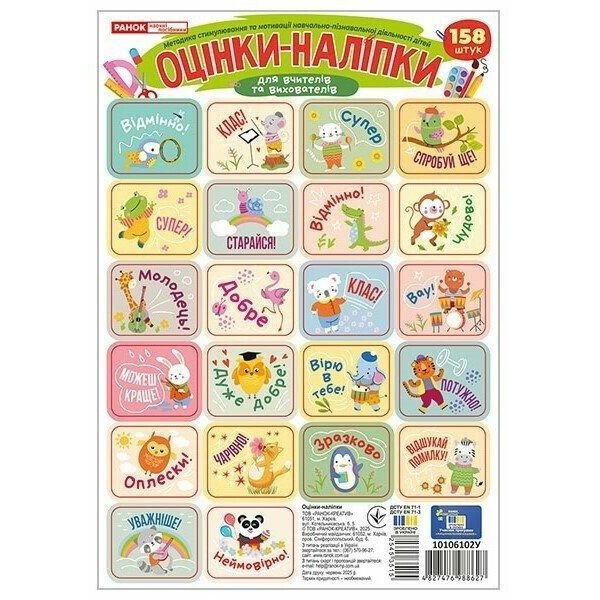 Опис Оцінки-наліпки в пакеті (4 аркуші, 158 наліпок), зелені