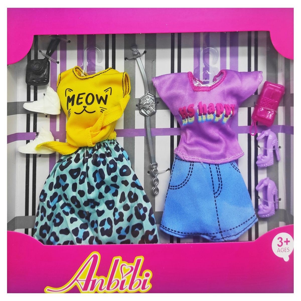 Набір із 2-х яскравих нарядів для лялечок стандартного розміру (заввишки 28 см). Наряди виконані з якісних матеріалів, мають міцні та надійні шви. Також в набір входить 2 пари туфель, 2 модні клатчі та ремінь. Набір обовʼязково сподобається маленьким модницям. Для дітей віком від 3-х років.