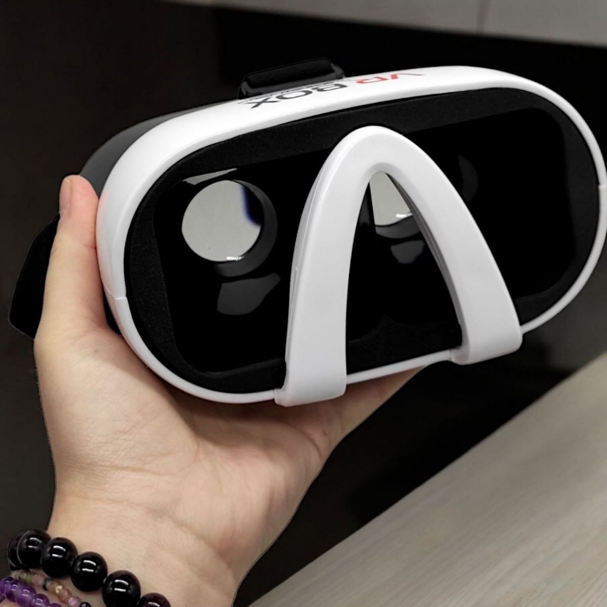 Окуляри віртуальної реальності для смартфона. Щоб випробувати ефект віртуальної реальності, потрібно помістити телефон у спеціальний відсік на окулярах та закріпити окуляри на голові за допомогою еластичних ремінців. Внутрішня сторона окулярів оброблена мʼяким матеріалом, що робить їх максимально комфортними у носінні. Відстань між лінзами можна регулювати. Для роботи окулярів не потрібні батарейки або інші джерела живлення. Сумісні з більшістю сучасних смартфонів із різною діагоналлю екранів. Розмір окулярів: 17.5х12х9 см.