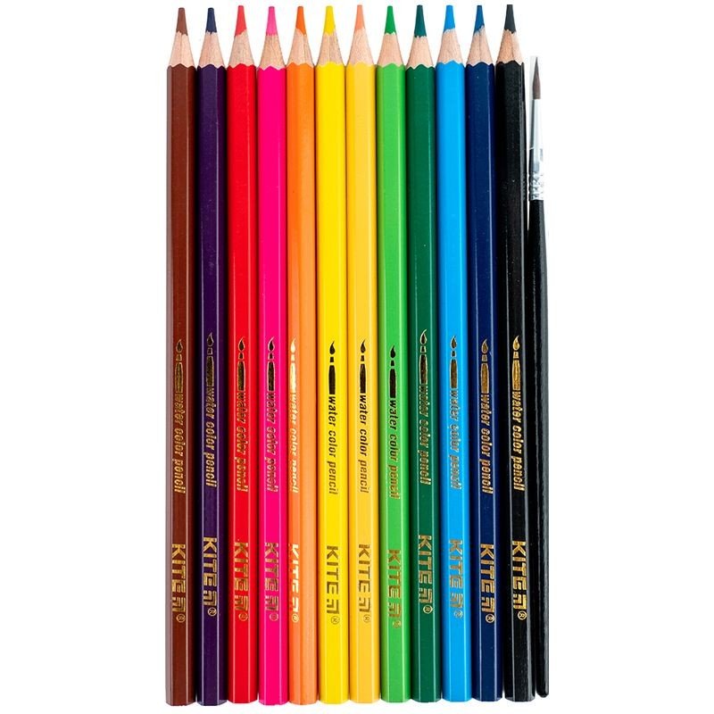 Кольорові акварельні олівці Kite в картонній упаковці з пензликом. Дванадцять олівців мають гармонічну палітру, їх компактно зберігати в пеналі і рюкзаку дитини. Акварельні олівці поєднують властивості акварельної фарби і кольорового олівця. По малюнку, виконаному акварельними олівцями, досить провести мокрим пензлем і ми отримаємо справжній акварельний малюнок. Дитячі олівці малюють м'яко, при легкому натисканні дитина легко отримає яскраву картинку. Грифель товщиною в 3 мм малює плавно, не кришиться і не дряпає папір. Олівці при заточуванні або падінні не ламаються і не кришаться. Кольорові олівці виготовлені з міцної натуральної деревини. Олівці покриті лаком в тон кольору грифеля, який запобігає розсиханню і появі тріщин на корпусі. Довжина виробу 175 мм. Набір олівців Kite рекомендований для дошкільнят і школярів.