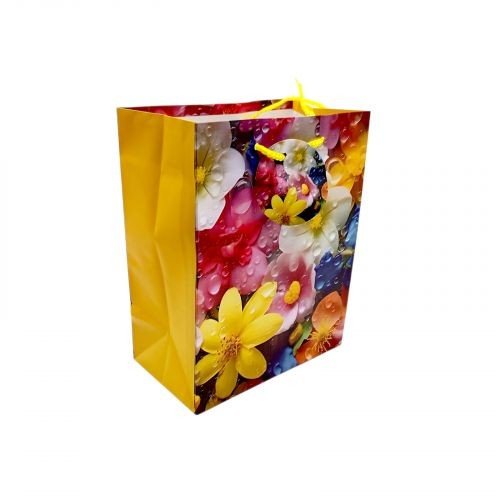 Опис Пакет паперовий 18х23х10 см, ранкові каплі на квітах