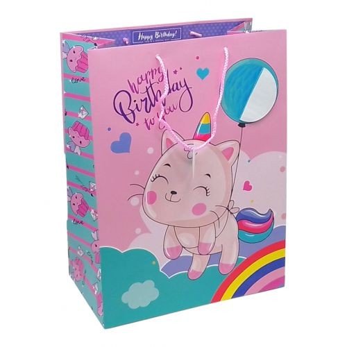 Пакет паперовий подарунковий Happy Birthday Единоріг 30х40х17см