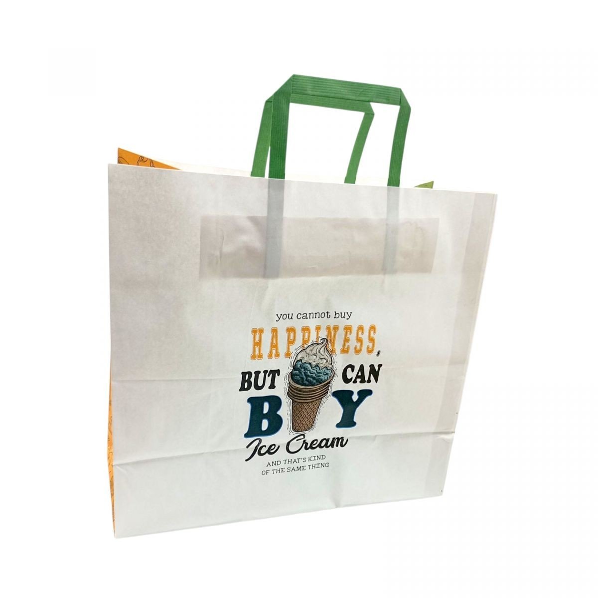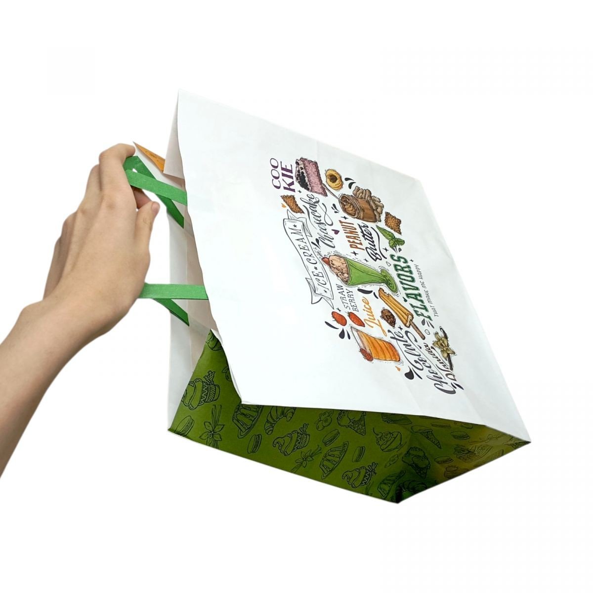 Опис Пакет паперовий з ручками Крафт білий 32х15х30 см