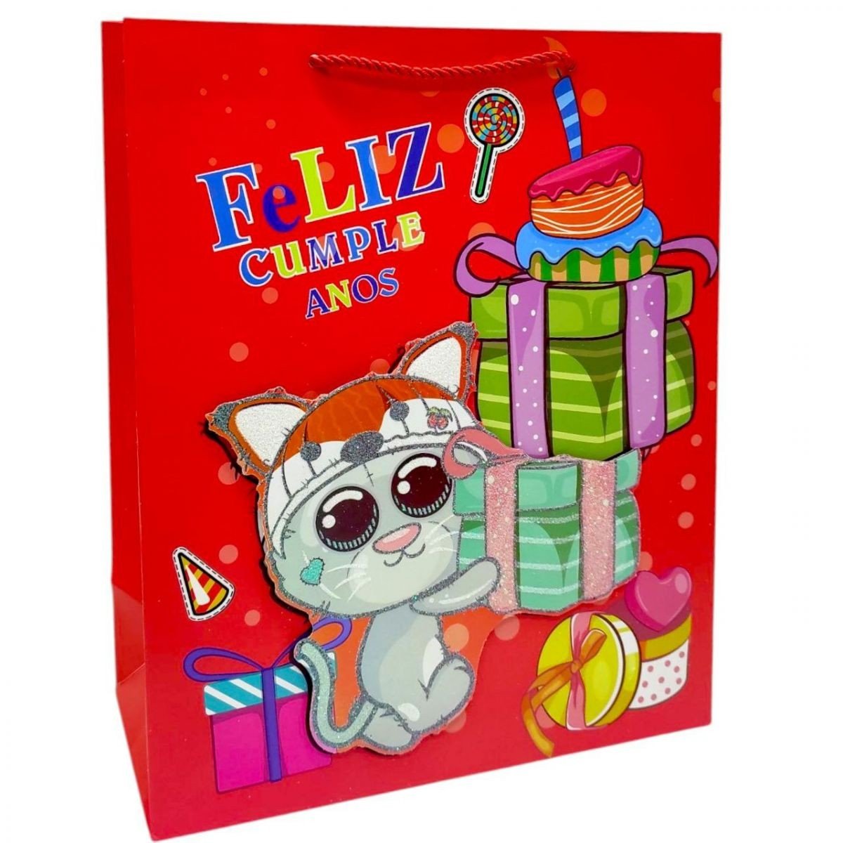 Опис Пакет подарунковий, 32х26х12 см (КОТИК ЧЕРВОНИЙ)