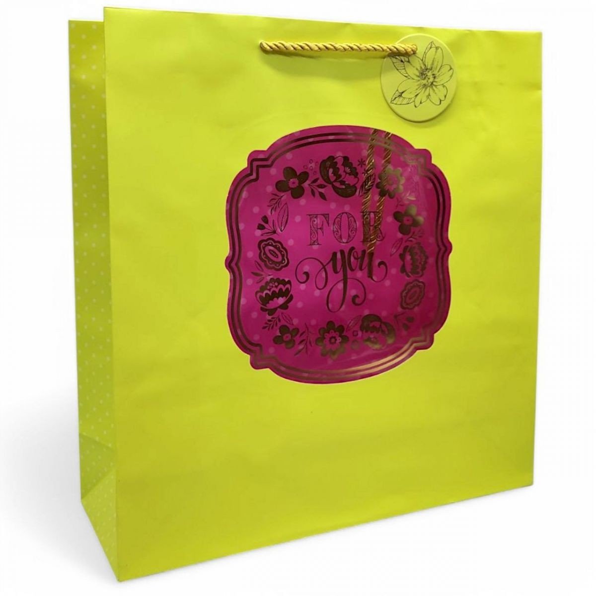 Яскравий подарунковий пакунок буде хорошим доповненням до основного подарунку та створить незабутній настрій свята. Пакет картонний, досить великого розміру: 35х37х12 см. Прикрашений красивим принтом. Має зручні та досить міцні ручки-мотузочки. Зробіть свій подарунок неперевершеним із цим чудовим пакетом.