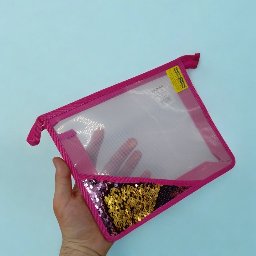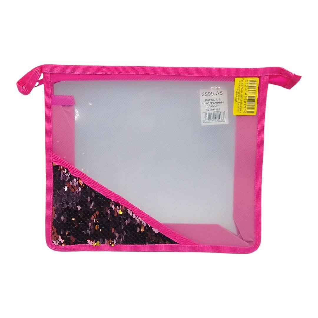 Папка А5 на змійці прозора з паєтками рожева