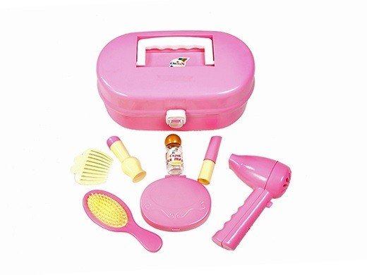 Парфумерний набір являє собою пластиковий ящик, в якому зберігається косметика (помада, пензлик та флакон для лаку, 3 флакончика для духів), 2 гребіінці, ножиці, фен і косметичка.