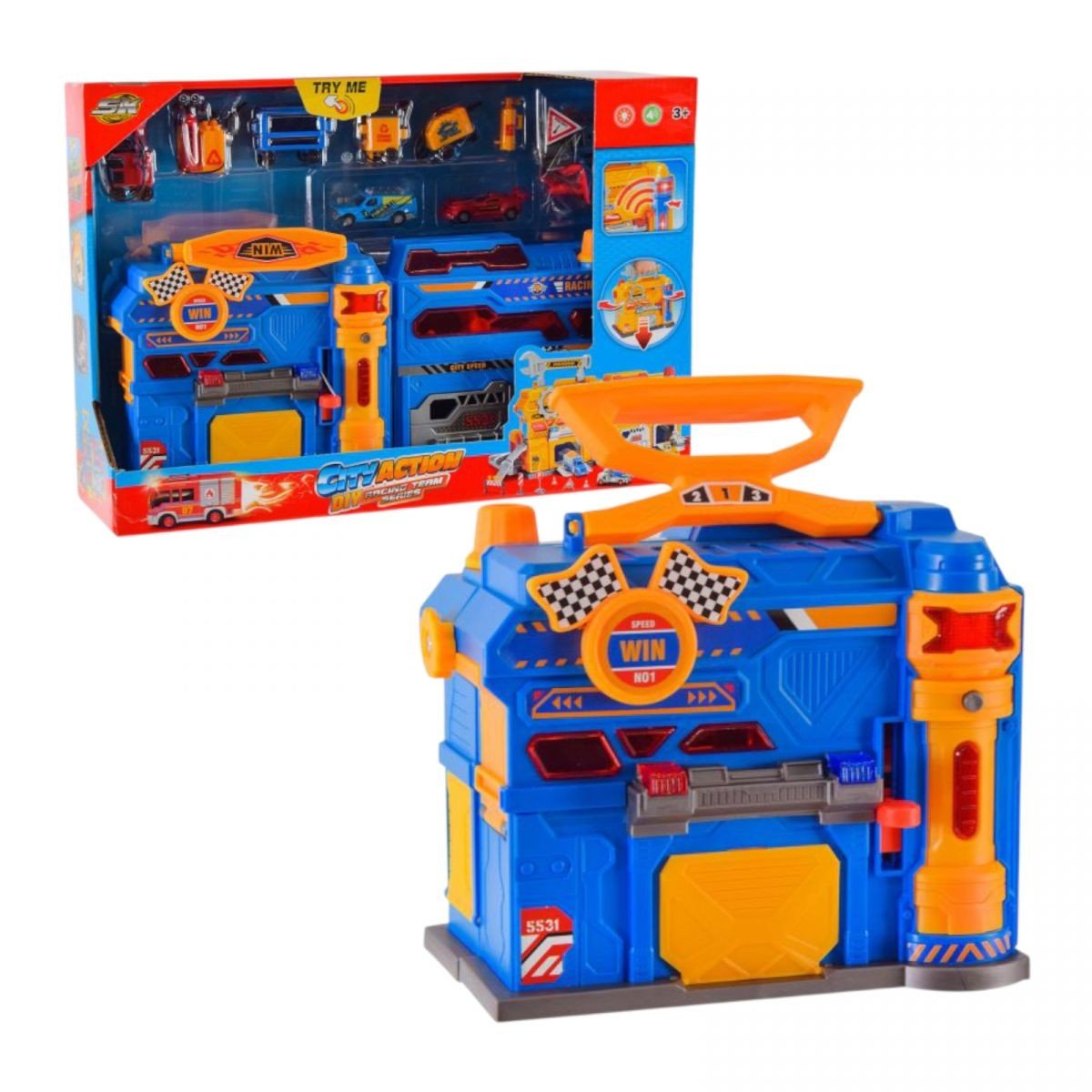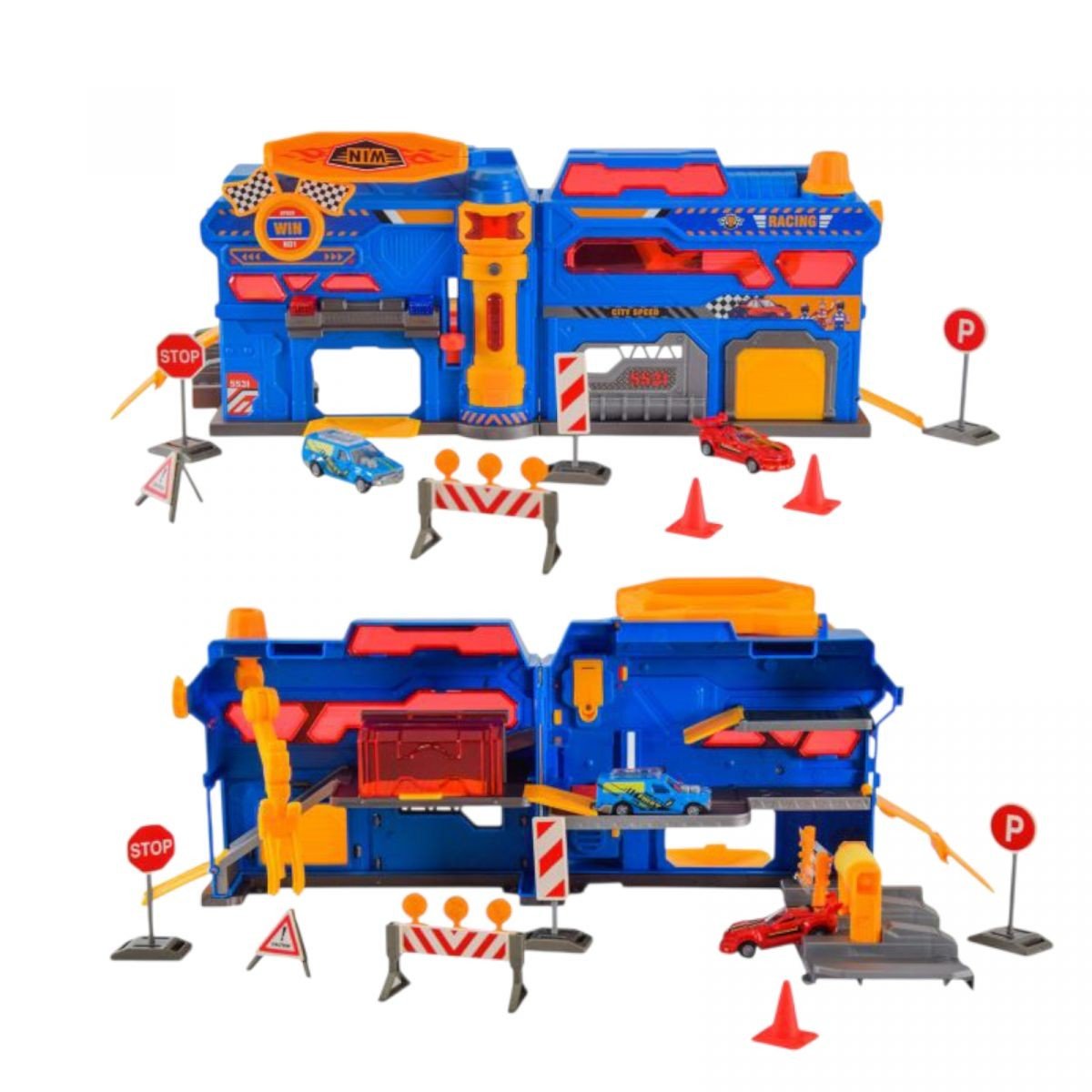 Опис ПаркінгСТО з метал.машинками (2шт.)та аксес.батар.муз.світ.кор.44*12,5*33 см.