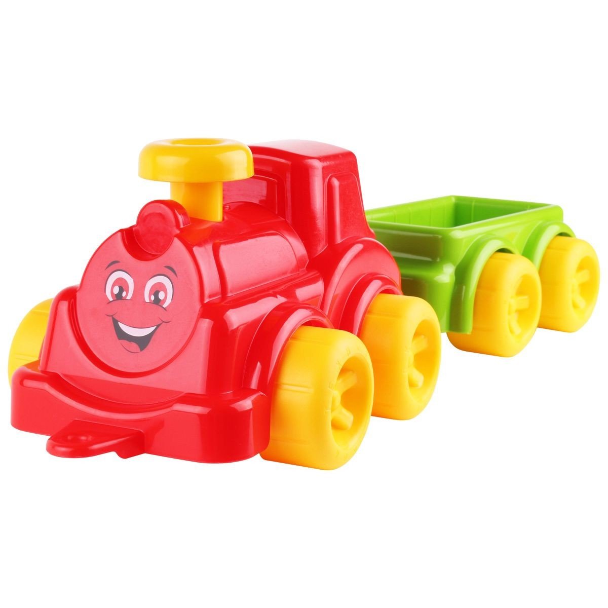 Яскрава іграшка для малюка від одного року. Складається іграшка з паровоза і вагончика. Розмір складеної іграшки: 44х13х11 см.